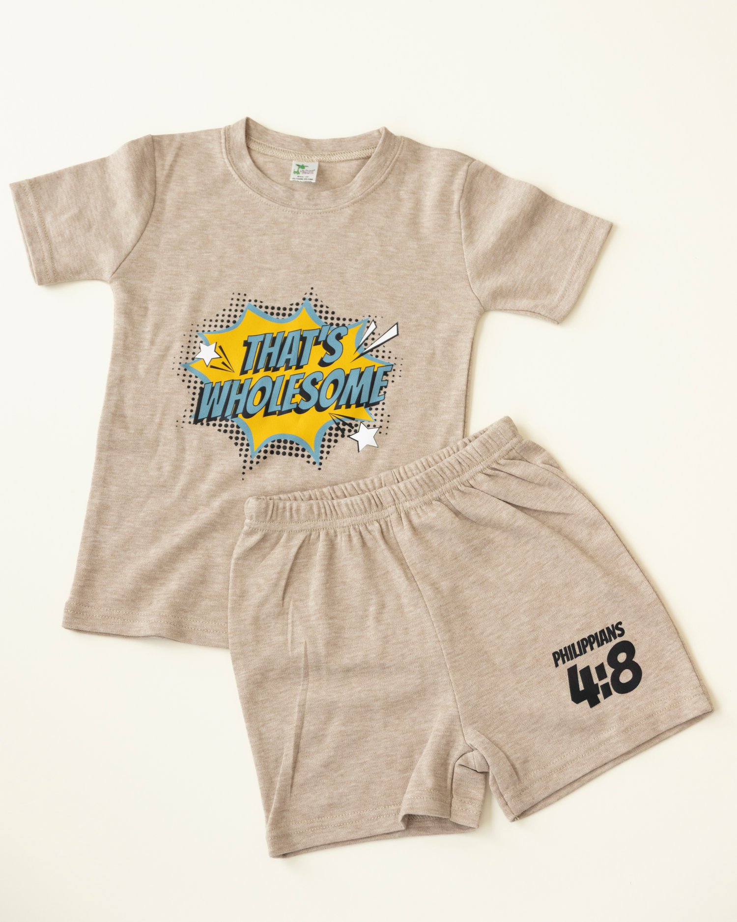 Wholesome Truffle Set. Cozy, Faith-filled and timeless. This soft truffle-toned set is designed for everyday wear while sharing Philippians 4:8 - a gentle reminder to keep your heart and mind on what is good.